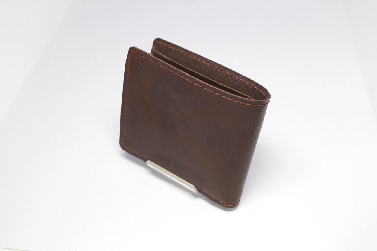 上質なイタリア産牛革のみを使用しており、とてもやさしい手触りの二つ折り財布です。