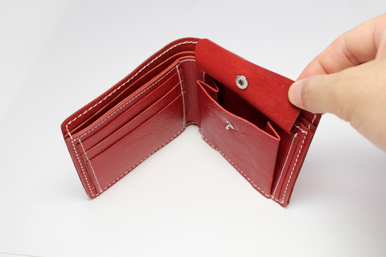 上質なイタリア産牛革のみを使用しており、とてもやさしい手触りの二つ折り財布です。